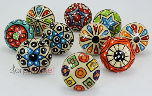 Karmakara Ornateブルー花柄セラミックノブキャビネットの&食器棚 – Hand Painted Pulls
