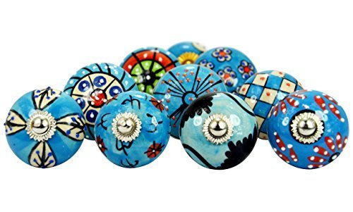 Quantity - 10 PCS, Diameter Of each Knobs- Standard 1.75(inch), Color -Deep sky blue & Different Color,Design -Multi Beautiful Designed, Materials - Ceramic