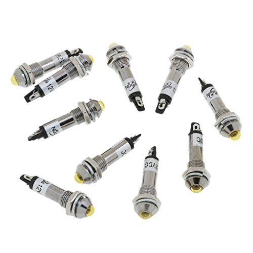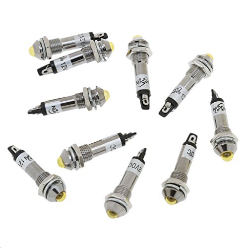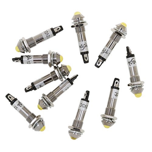 Dovewill 10個 DC12V 8mm 省エネ 金属 LED インジケーター 信号光 パイロットライト 小型家電製品、溶接機など用 - 黄