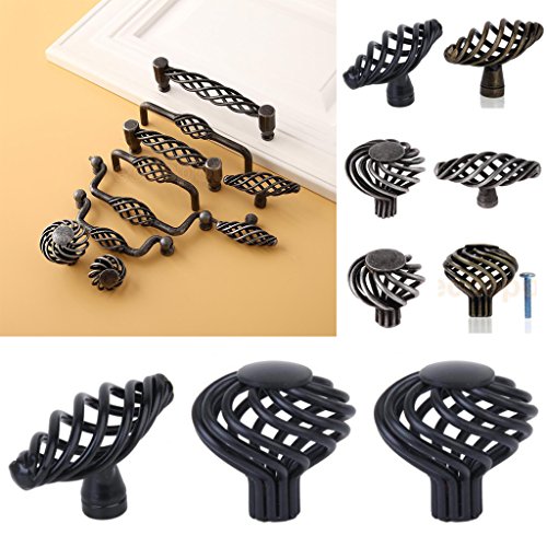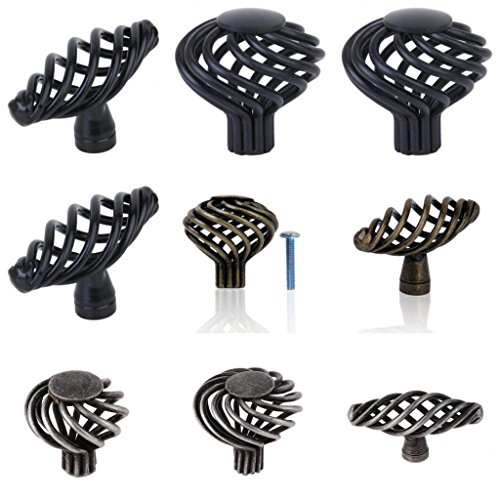 Dovewill 鉄 - ニッケル合金製 スパイラルケージ設計 引き出し、ビン、ドレッサー、食器棚 ドア ハンドル ノブ 取手 黒い