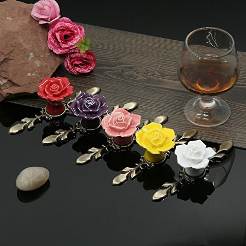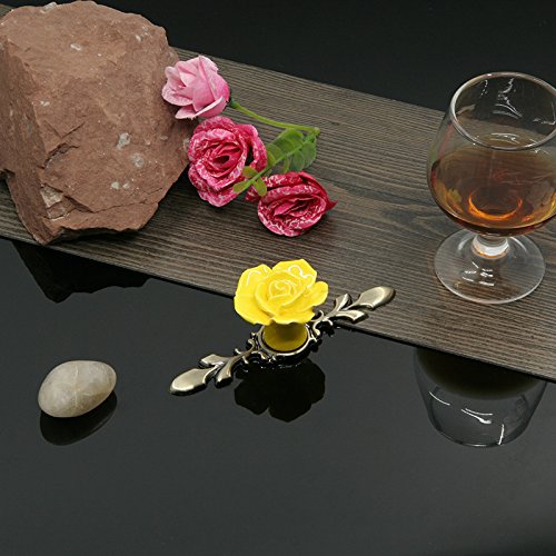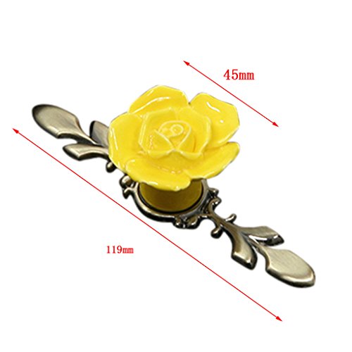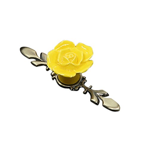 Dovewill ワードローブ 食器棚 ドレッサー 引き出し セラミック ローズ プル ハンドル ノブ 全5色 - イエロー