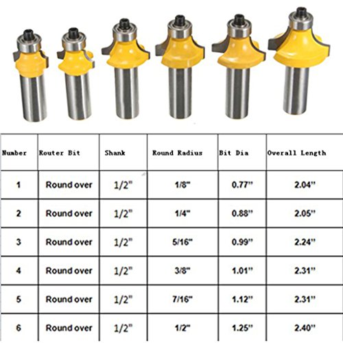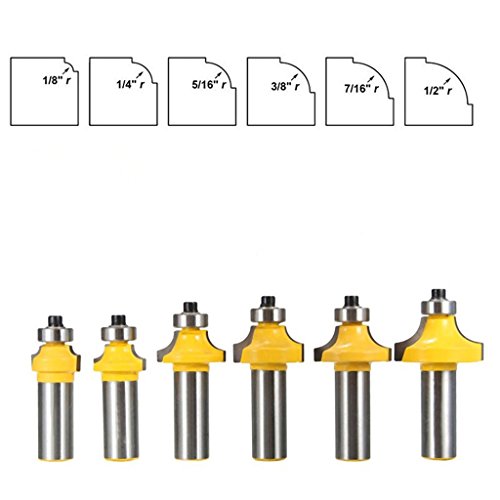 Dovewill 6本入り 高品質 縁取り ルータビット ベアリング チゼルカッターセット 1/2インチシャンク