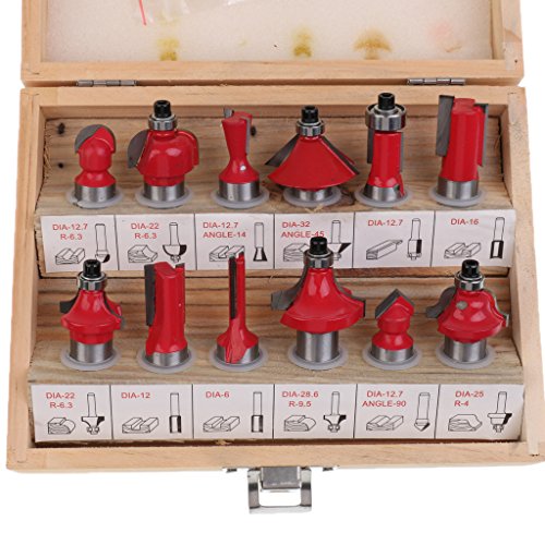 Dovewill ルータカッタービット ルーティング シャンク 木製ケース含む ツール 全2サイズ2様式 - 12mm, 12本