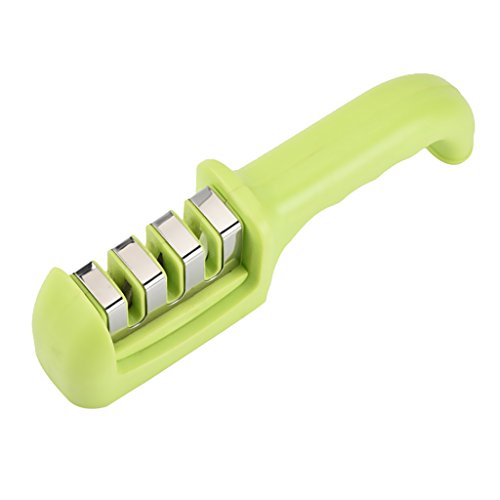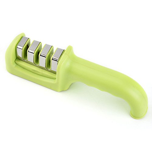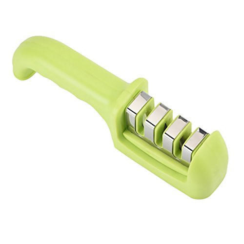 Dovewill 全3色 3段式 ナイフ 研ぎ器 包丁研ぎ ダイヤモンド砥石 セラミックロール シャープナー 長持ち 便利 ステンレス鋼 - グリーン