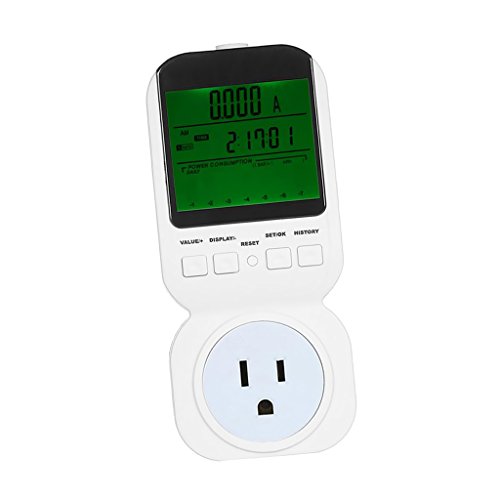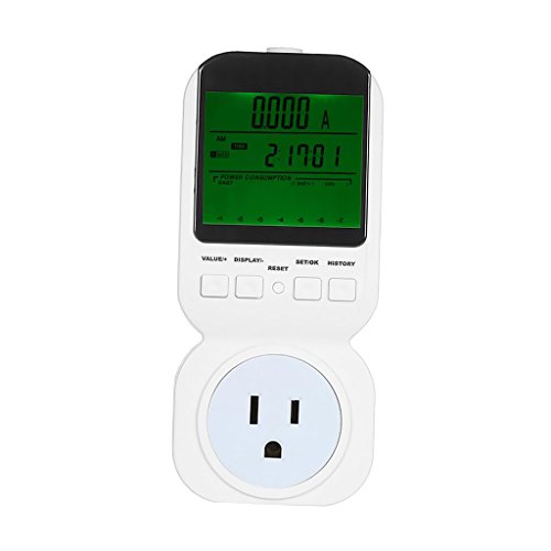 - この電力計は、接続された機器の消費電力と消費された電力のコストを表示する監視および試験機器です。値は、電圧、電流、電力入力、周波数、力率などで表示することができます。また、電力料金を入力して実際のコストを表示することもできます。さらに、測定装置には、過去7日間/ 7カ月間の合計消費量と稼働時間が表示されます。同等のCO2排出量をkg単位で表示し、さらに生態学的な情報を提供してください。日常生活の中でエネルギーとコストを節約することがあなたの最善の援助になるでしょう!