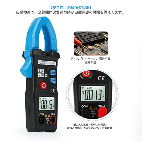 - 【機能性が多い、測定は正確で】交流電流、直流電圧、交流電圧、抵抗と電気回路のオンーオフを測量するができます。最大入力電流:600A AC電流。最大入力電圧:600V DC/AC (有効数値)。サンプリングの時間は約3度/秒。