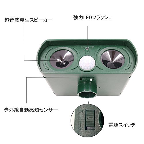 - 【3つの優れた撃退機能】強力LEDフラッシュ,赤外線自動感知センサー,超音波発生スピーカーの3つの撃退機能があり、どんな害獣が来てもしっかり家や畑を守る。