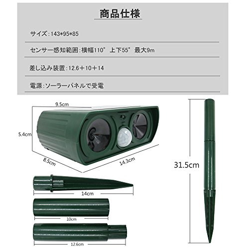 - 機能が強大:庭の花壇、畑と果樹園などの屋外で動物を撃退することができます。