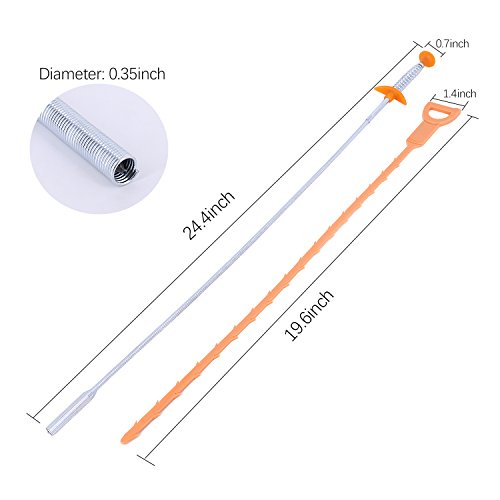 - √機能が含まれています。ステンレススチール製の排水口パイプクリーナーは、研磨されて、それを破損することがしない。また、優れた柔軟性を一意のハンドルをつかむための障害物をコントロールするだけ。蛇のバーブプラスチックドレイン、簡単に障害物をフックします。
