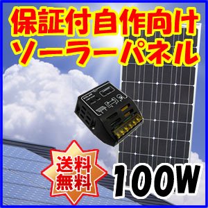 ソーラー発電用 100Wソーラーパネル(12v)(太陽光パネル・太陽パネル)チャージコントローラー12Aセットの解説 自作に最適なソーラーパネルとチャージコントローラーのセットです。 ソーラー初心者の方も安心の日本語取り付けマニュアルも 同梱させて頂いております。 小型で省スペースに設置可能なため、ご家庭やご自宅のベランダなどにDIY感覚で太陽光電池(ソーラー電池・太陽電池)として簡単に設置可能です。 災害時や非常用以外にも、屋外、外での電源として、お庭のイルミネーションや外で使われる井戸や船(船舶・クルーザー)、自動車やキャンピングカーなどでもご利用いただけます。 初めて太陽光発電、自家発電にチャレンジする方も安心です。 非常用や節電、エコに取り組む方に大好評いただいているソーラーパネルで ソーラー発電機(太陽光電池発電機)を構築してみませんか?