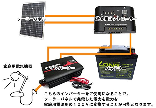 定格500W(最大1000W) DC(直流)12V 60Hz AC(交流)100Vの解説 太陽光パネル、ソーラーパネル等で自家発電した電力を、家庭用電源である100Vに変換できるインバーターをお届けします。 こちらの製品は疑似正弦波ではなく、純正弦波のインバーターになります。 照明機器にはもちろん、パソコンや冷蔵庫、テレビなどにもご利用いただけます。 安心の保証もお付けしています。 日本語のマニュアルも無料で同梱させて頂いておりますので簡単にご使用できます。 ご使用になる家電の最大消費電力に合わせて製品をお選びください。 自作ソーラーの電気、家庭用の家電で使用してみませんか?
