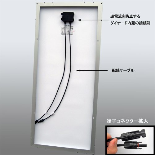 ソーラー発電用 200Wソーラーパネル(36v)(太陽光パネル・太陽パネル)の解説 自作に最適なソーラーパネルです。 ソーラー初心者の方も安心の日本語取り付けマニュアルも 同梱させて頂いております。 小型で省スペースに設置可能なため、ご家庭やご自宅のベランダなどにDIY感覚で太陽光電池(ソーラー電池・太陽電池)として簡単に設置可能です。 災害時や非常用以外にも、屋外、外での電源として、お庭のイルミネーションや外で使われる井戸や船(船舶・クルーザー)、自動車やキャンピングカーなどでもご利用いただけます。 初めて太陽光発電、自家発電にチャレンジする方も安心です。 非常用や節電、エコに取り組む方に大好評いただいているソーラーパネルで ソーラー発電機(太陽光電池発電機)を構築してみませんか? 単結晶ソーラーなら高出力のため、太陽光をぐんぐん吸収して効率よく発電してくます。この楽しみを ぜひ味わってみてください。