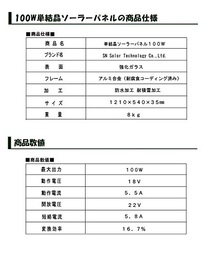 ・商品名:単結晶ソーラーパネル 100W