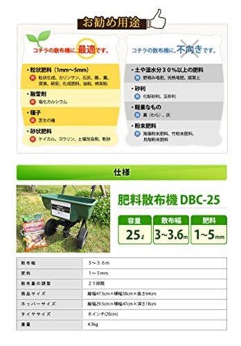 手押し式 小型肥料散布機 DBC-25の解説 日本語のマニュアルも 同梱させて頂いております。 手押し式 小型肥料散布機 DBC-25の詳細 ・肥料 散布機