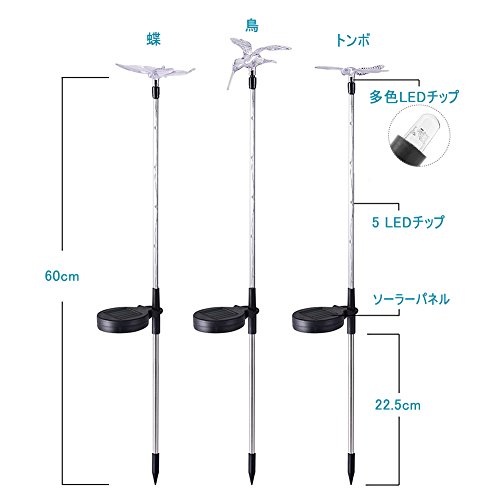 - ★【1セット3本】1セットに3本があります。本物の蝶・鳥・トンボの様に舞う姿で、夜のお庭の装飾、シーンの演出はもちろん、昼間でもお庭のデザインの一部として楽しめるセンサーライトです。