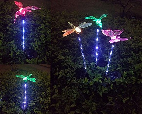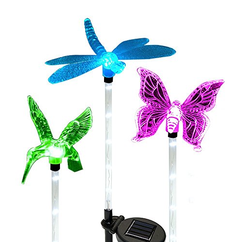 DreamSky ソーラー led ライト ガーデンライト 色が変わる ボールライト 屋外 照明 IP65防水 防犯ライト 庭園灯 植栽 花壇 アプローチ イルミネーション(蝶・鳥・トンボ 3本セット)