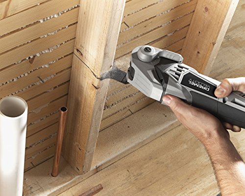 The Dremel Velocity VC60 is the power tool that bridges the gap between traditional oscillating tools and rough-cutting tools, such as reciprocating saws and circular saws. The Velocity tool allows you to tackle larger jobs that other traditional oscillating tools can't. With a powerful 7.0 AMP motor, an integrated control foot, 5 degrees of oscillation angle and a newly designed, patented drive system, users can now feel confident about making long and accurate cuts quickly in a variety of materials. Velocity is a two position tool; with the control foot open, the tool is great for making long, accurate cuts in panel materials and with the control foot closed, the tool is a high-powered traditional oscillating tool optimal for any cutting, scraping, sanding, grinding or grout removal application. The Velocity is an ideal tool for professional remodelers who want a fast-cutting, low dust tool to get through a variety of materials for any indoor job, such as a bathroom or kitchen remodel. It's also great for the home owners who want one tool that does it all, rather than spending money on multiple tools to cut plywood, drywall, conduit, PVC pipe, 2 x 4 and tile backer during home repairs.