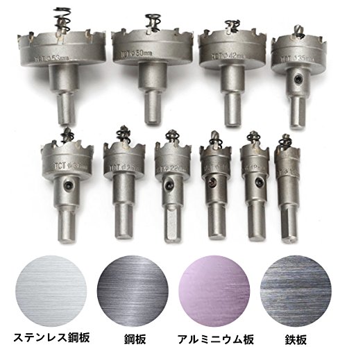 - 【パッケージ内容】ホールソー数量:1セット(10本入)。サイズ:16mm, 18mm, 19mm, 22mm, 25mm, 30mm, 35mm, 42mm, 50mm, 53mm