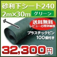 デュポン社 プロ用 グリーンビスタプロ砂利下シート240グリーン(2m×30m)とプラピン25mm×115mm100個ついたセット