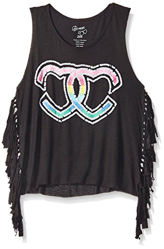 Flowers by Zoe Big Girls' Sequin Icon Fringe Top Black Large [並行輸入品]