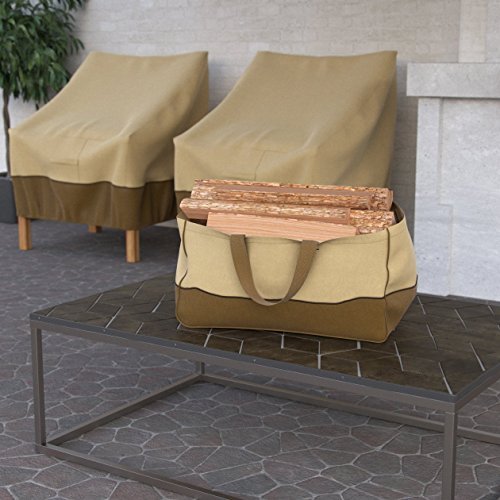 Dura CoversタンHeavy Dutyジャンボキャンバスログトートバッグキャリアインドア暖炉Landmann薪TotesホルダーラウンドWoodpileラックFire木製キャリアCarryingのアウトドアTubular Birchwoodスタンド
