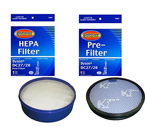 Dyson DC27 & DC28 Bundle filter Kit, Includes DC27 DC28 Washable Dust Cup filter, and Post Motor HEPA Exhaust filter s, Generic For Parts 919780-01, and 915916-03 by Dust Care.