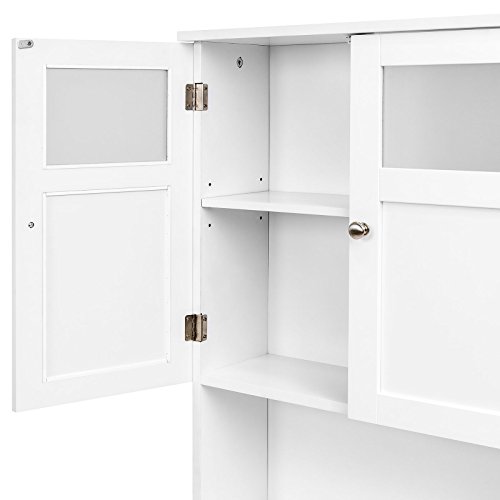 ⭐の構築されたモダンクラシックなデザインの特徴曇り、ドアの強化ガラスとつや消しクロームドアノブ⭐浴室スペースセーバーのリネンのキャビネットは木製でホワイト塗装仕上げ⭐に2つの棚このキャビネットの扉を開くの背後では、最適なストレージと組織⭐オープンスペースの配置を下の棚には浴室飾りに最適または追加のリネン⭐全体の寸法23.25 cm ( L ) X 8.5 cm ( W ) X 66.75 cm (高さ)