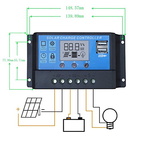 - LCDチャージコントローラーは温度保護、低電圧/逆極性接続保護、過負荷および短絡保護機能します