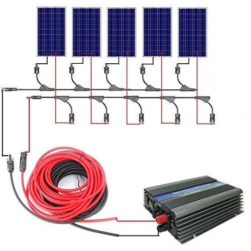 ECO-WORTHY 500W ソーラーパネル キット: 5x100W 12V ソーラーパネル+MC4 コネクター+ソーラーケーブル+500W グリッドインバター
