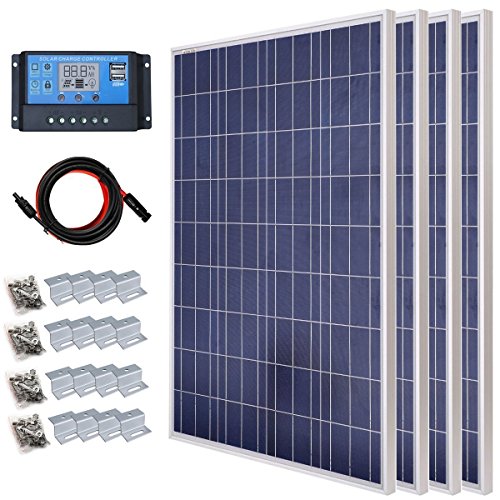 ECO-WORTHY 400w ソーラーパネルキット: 100w ソーラーパネル 4個 + 20A LCD チャージコントローラー + ソーラーケーブルアダプター + Z 取付金具
