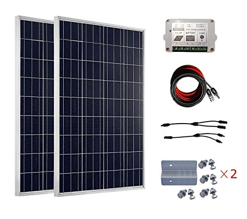 ECO-WORTHY 200W ソーラーパネルキット: 2個 100W ソーラーパネル + 9m ソーラーケーブル+ 15A チャージコントローラー + Y 型コネクター + Z 取付金具