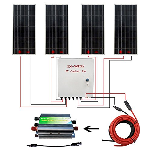 ECO-WORTHY 400 W ソーラーシステム: 4個 100W ソーラーパネル + 30A PWM チャージャーコントローラー + 6-ストリング ソーラーコンバイナー + 24cm ケーブルコネクター