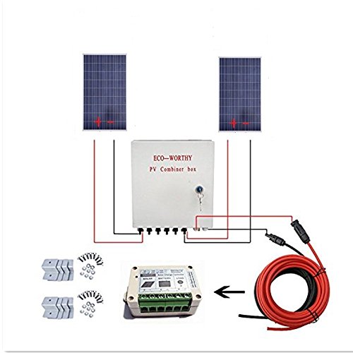 ECO-WORTHY 200W ソーラーパネルキット: 2個 100W ソーラーパネル + ソーラーケーブル + 15A チャージャーコントローラー + コンバイナボックス + Z 取付金具 RV ボート