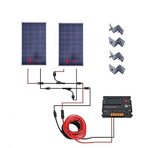 ECO-WORTHY ソーラーキット: 2個 100W ソーラーパネル + 4.5m延長線 + 20A 温度補償チャージャーコントローラー + Y MC4 コネクター + Z 取付金具