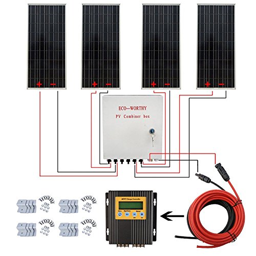 ECO-WORTHY 400W ソーラーパネルキット: 4個 100W ソーラーパネル + ソーラーケーブル + 20A MPPT チャージャーコントローラー + コンバイナボックス + Z 取付金具 RV ボート