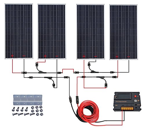ECO-WORTHY 400W ソーラーパネルキット: 4個 100W ソーラーパネル + ソーラーケーブル + 20A チャージャーコントローラー + コンバイナボックス + Z 取付金具 RV ボート