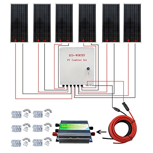 ECO-WORTHY 600W ソーラーパネルキット: 6個 100W ソーラーパネル + ソーラーケーブル + 30A チャージャーコントローラー + コンバイナボックス + Z 取付金具 RV ボート