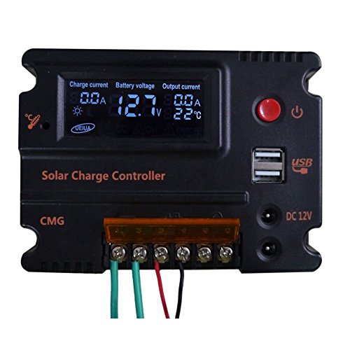 ECO-WORTHY 20A 12V 24V LCDソーラー充電コントローラ ラソーラーパネル 自動調整スイッチ 過負荷保護 温度補償