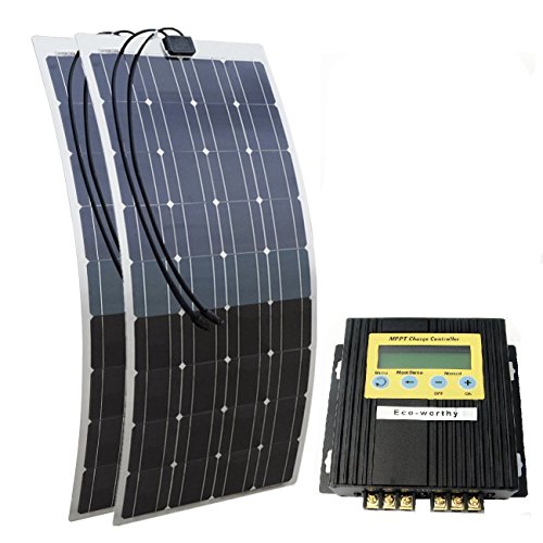 ECO-WORTHY 200W 12Vモノフレキシブルソーラーパネルキット:100W12Vソーラーパネル*2+20A MPPTコントローラ