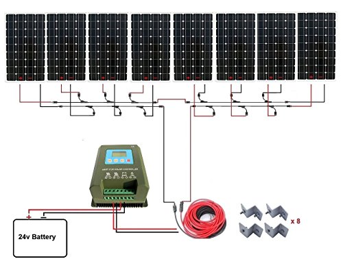 ECO-WORTHY 1300W ソーラーパネル 24V オフグリッドキット: 8個 160W 単結晶ソーラーパネル+40A MPPT コントローラー+ソーラーケーブル+MC4 コネクター+Z 取付金具