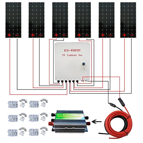 ECO-WORTHY 1000W オフグリッドソーラーパネルキット: 6個 160W 単結晶ソーラーパネル+45A ソーラーチャージコントローラー+MC4 ソーラーケーブル+PV コンバイナボックス+ソーラーパネル取付金具