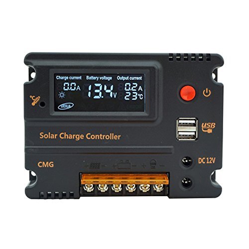 ECO-WORTHY ソーラーパネルチャージコントローラー 10A 12V 24V LCDソーラー充電表示 自動調整スイッチ 過負荷保護 温度補償