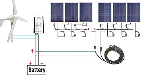 ECO-WORTHY 24V 1KW 風力発電機+ソーラーパネルシステム:12V/24V 400 W風力発電機*1個+ 12V 100W ソーラーパネル*6個 + Y 型MC4 コネクター*4ペア + 15.5m ソーラーケーブル