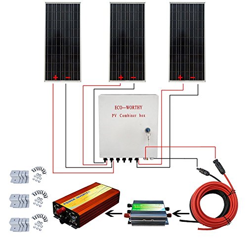 ECO-WORTHY 300 Wソーラーパネルキット: 3個 100W ソーラーパネル + 1000W 12V-110V 正弦波インバーター + コンバイナボックス + ケーブル + 30A チャージャコントローラー + Z 取付金具
