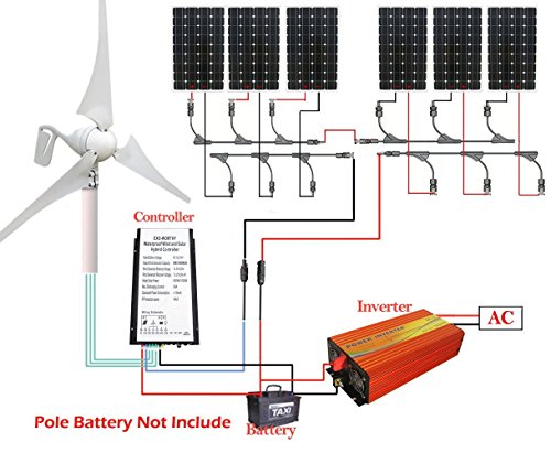 ECO-worthy 1400W キット:400W 風力発電機 & 6*150W 単結晶ソーラーパネル& 1.5KW インバーター