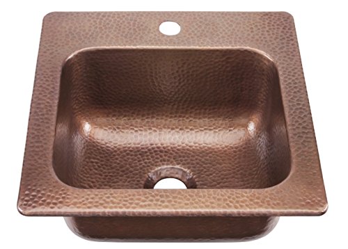 Sinkology Seurat Drop In Handmade Pure Solid Copper 15 in. 1-Hole Bar Copper Sink in Antique Copper [並行輸入品]