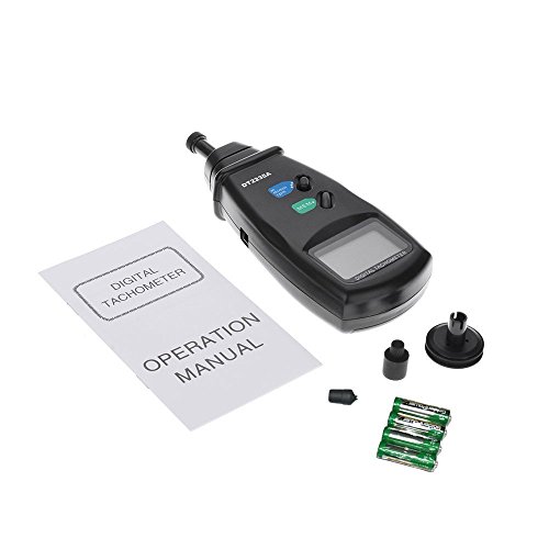 測定範囲: 0.5〜19999RPM。 0.05~ 1999.9 m/min。 0.2~6560 ft/min。 測定精度:+/_0.05%+1桁。 解像度: 0.5~999.9RPM: 0.1RPM、1000RPM以上は1RPMです。 0.05〜99.99m/分:0.01米/分、100m以上は0.1M/分です。 0.1~999.9ft/min: 0.1ft/min、1000ft/min以上は1ft/min。 サンプリング時間:0.8秒(60 RPM以上)。 メモリ:最大/最小/最後の値を表示する。 電池:4 x 1.5V AA(電池を付属)。 パッキング: 1*接触式回転計。 4*回転輪 4*単3電池 1*英語取扱説明書