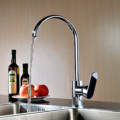 efluky high-arch Gooseneckステンレススチール360度回転注ぎ口ホットとコールド水キッチンシンク蛇口