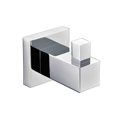 eflukyソリッド真鍮バスルームスクエアシングルローブフック洋服コート帽子タオルwall-mount、クロム