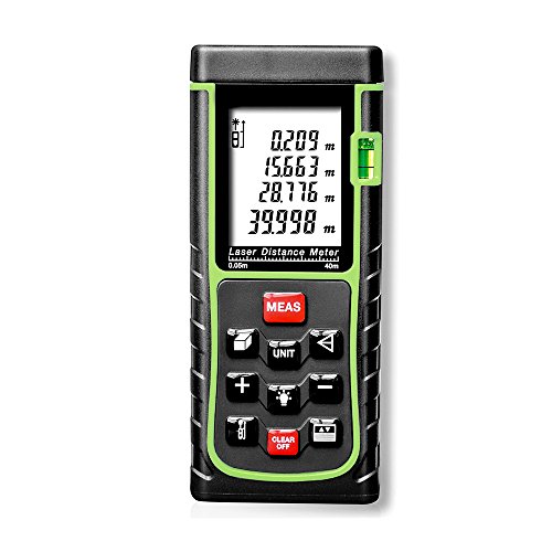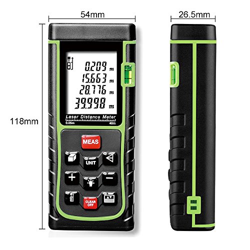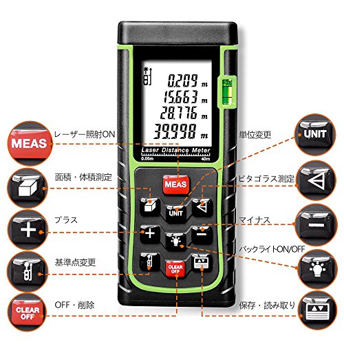 ELEPHASレーザー距離計40m携帯型 ポータブルハンド式デジタルメジャーリング 距離・面積・体積・ピタゴラス・自動計算・連続測定可 LCDデジタル表示バックライト付き測定計器 防塵 防水 (E40)